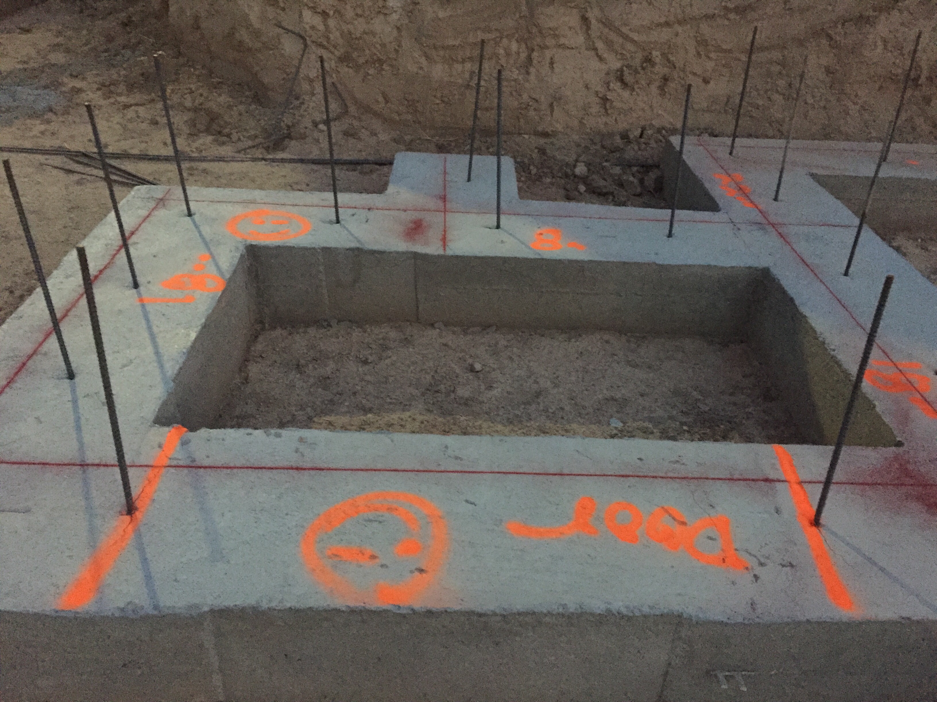 Do you see the spray paint? There’s a smiley face by the door….I’m pretty happy there’s going to be a door there, too. This is going to be cold storage just below the front porch.