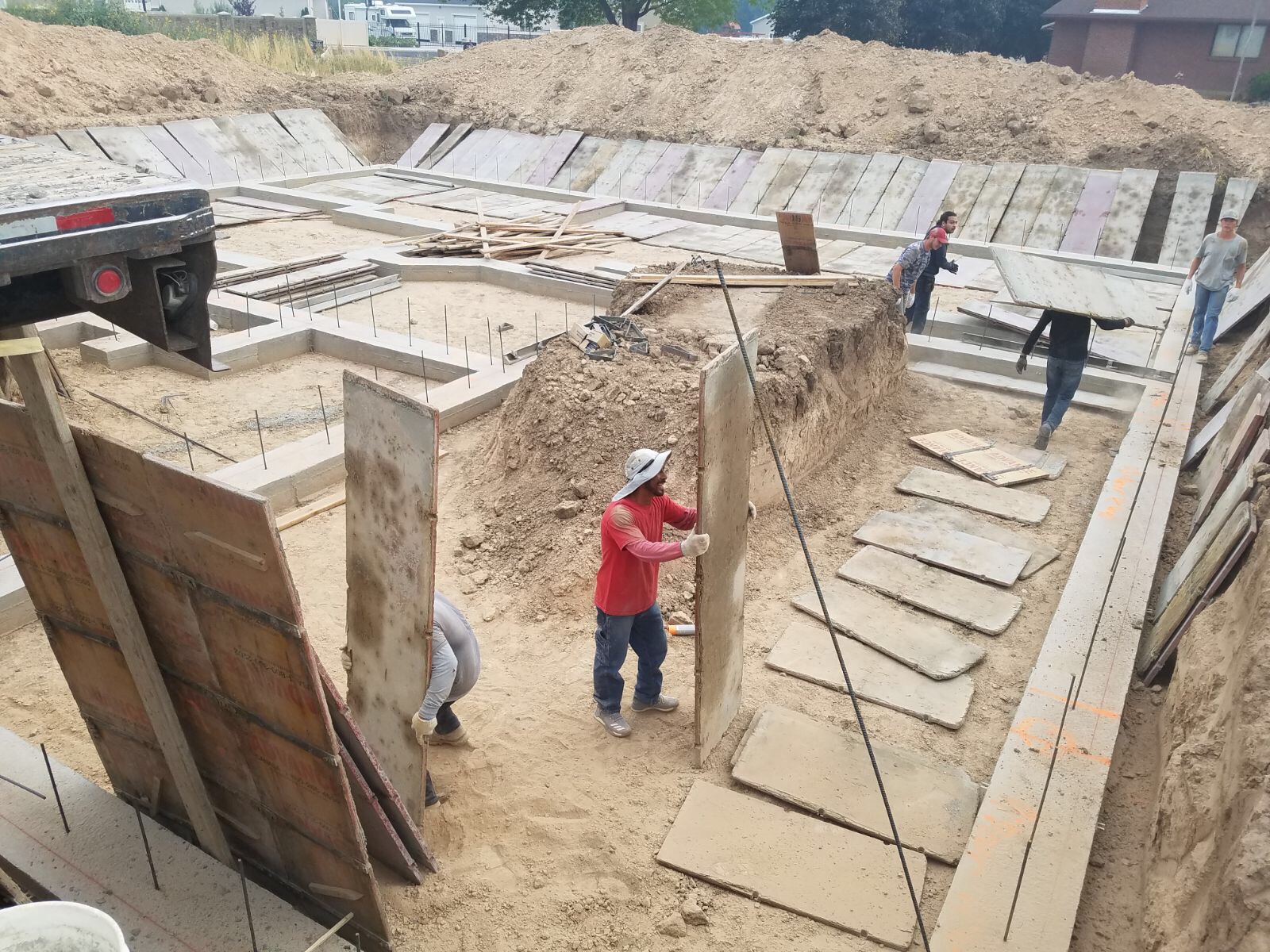 We’re getting ready to make some walls. This trailer is covered with the forms that will be used for the concrete foundation walls.