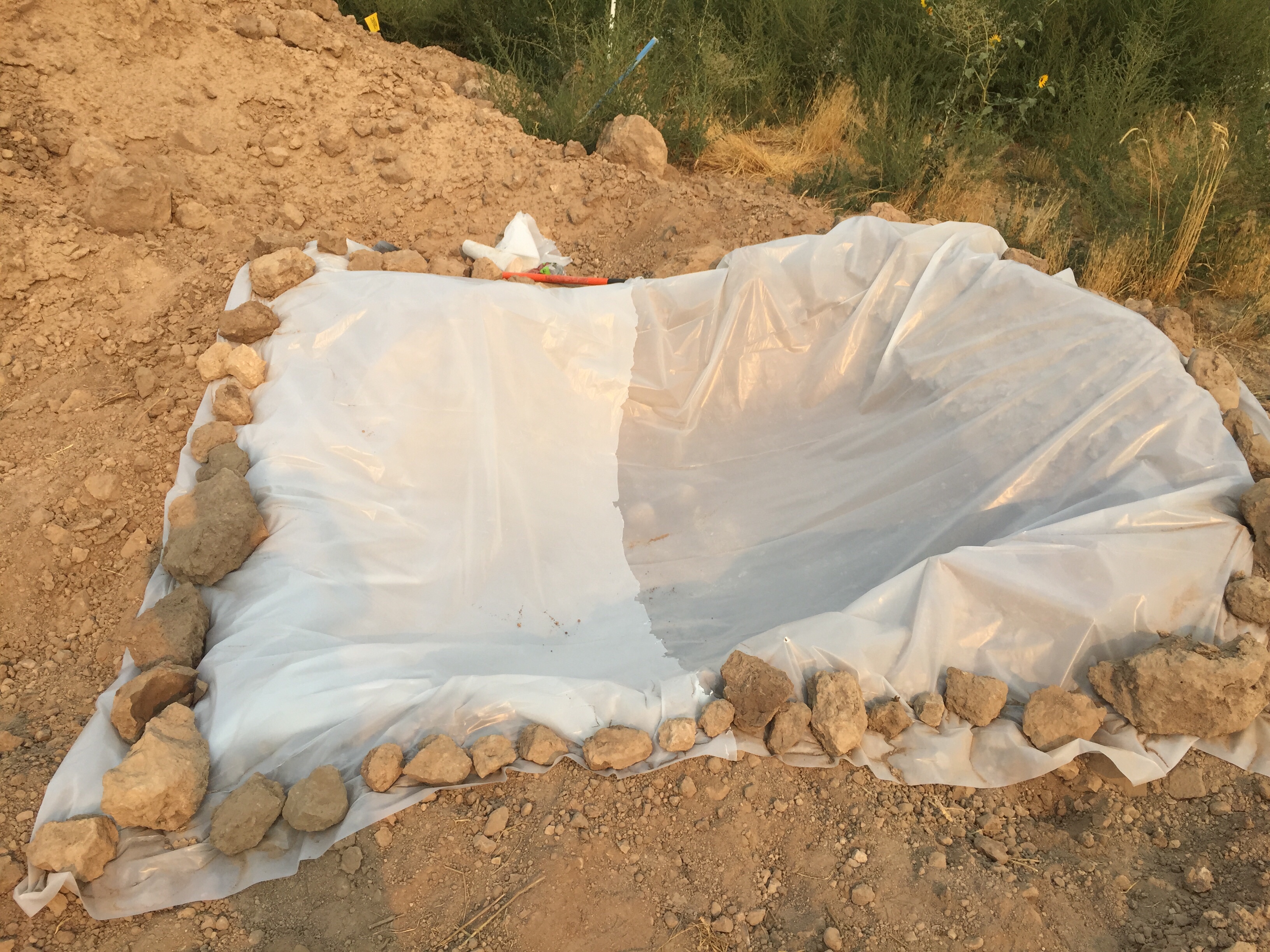 Here are the forms before they were set and the plastic is for the concrete washout.